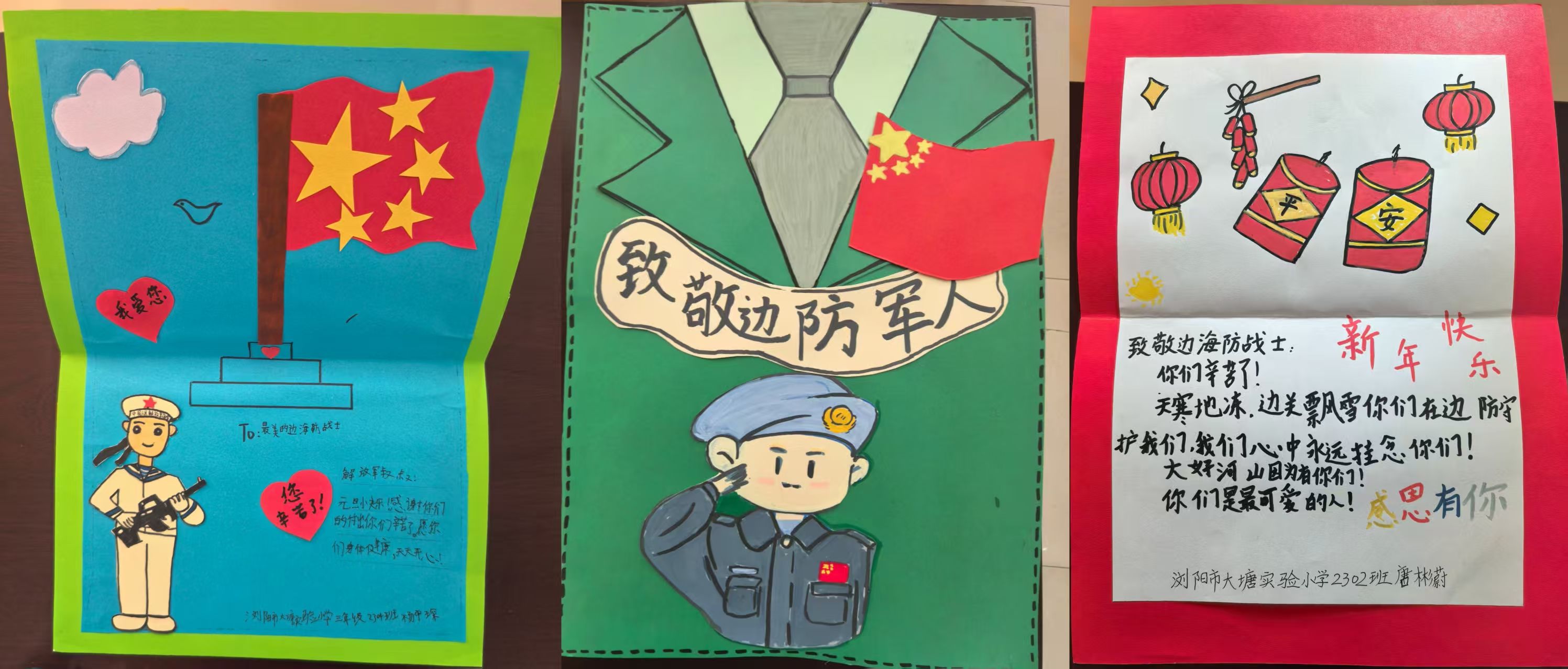 孩子们稚嫩的画笔下,鲜红的国旗迎风飘扬,戎装戍边的解放军战士形象鲜活生动,一笔一画勾勒出对军人的崇敬,一字一句诉说着真挚的祝福。一张张自制贺卡,既是童心暖意的传递,更让国防教育的种子在孩子们心中悄然扎根。